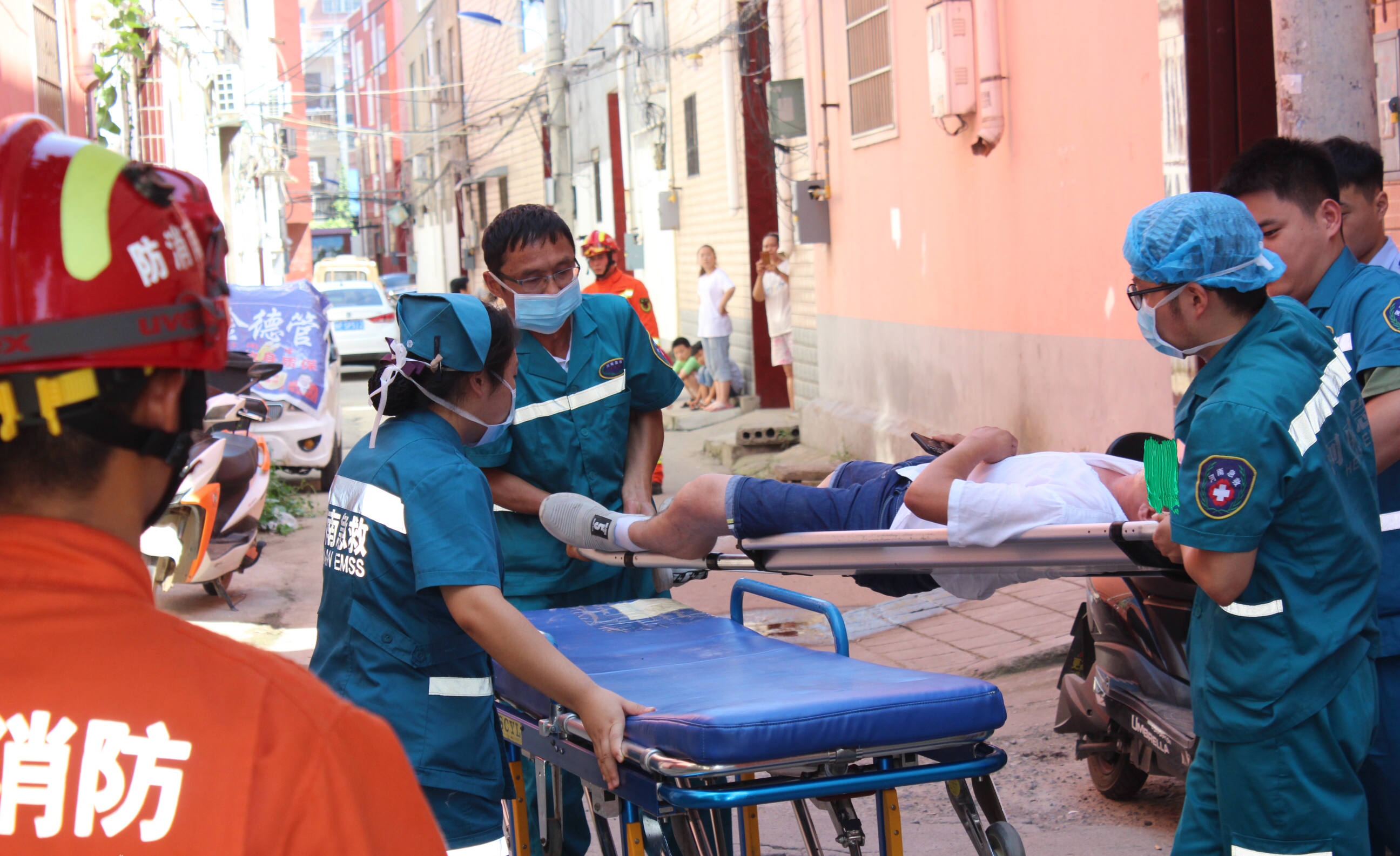 接到報警后,市公安局七一路分局民警、消防官兵、急救中心醫(yī)護(hù)人員迅速趕到現(xiàn)場?!安灰^來,再過來我就跳下去!”該女士在樓頂邊緣嘶吼著,當(dāng)日天氣比較炎熱,女子隨時都可能因體力不支而墜樓?,F(xiàn)場消防人員立即疏散圍觀人員,由于民房院內(nèi)面積較小,救生氣墊無法充起,給救援工作增加了難度,現(xiàn)場民警與消防隊員及時調(diào)整救援方法,先穩(wěn)住該女子情緒,伺機(jī)再將其救下。
