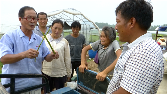當(dāng)天,一場(chǎng)技術(shù)講座正在如期舉行,當(dāng)?shù)赜忻奶J筍種植“土專家”程殿明說:“咱這蘆筍種植,要以噴灑生物藥為主,在有機(jī)種植上,千萬不能用有機(jī)磷類的。大棚要想多掙錢,眼下管理是關(guān)鍵,長勢(shì)好了,進(jìn)入冬季,一個(gè)棚采摘就能掙三到五千塊錢?!?/p>