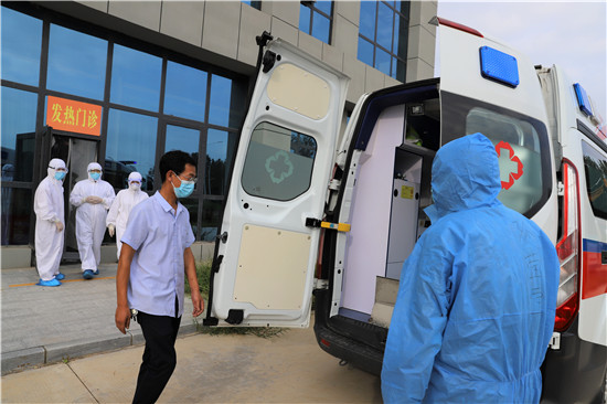 演練中,一名中年男子駕車到港區(qū)醫(yī)院就診,患者自述一周來在外地居住,無(wú)發(fā)熱癥狀,近一天來有氣促,活動(dòng)后胸悶、氣促加重,偶有咳嗽。經(jīng)急診科醫(yī)生多次詳細(xì)詢問流行病學(xué)史,發(fā)現(xiàn)患者有隱瞞病史嫌疑(一周前同室居住工友,23日已確診為新冠患者),確定該病員為可疑新冠病毒肺炎患者。立即電話通知科主任及醫(yī)療救治專家組成員會(huì)診,根據(jù)患者主訴和臨床表現(xiàn),專家組分析高度懷疑病人為可疑感染新冠病毒病員。立即轉(zhuǎn)運(yùn)至隔離留觀室,并通知傳染病管理小組將疫情上報(bào)至市疾病預(yù)防控制中心,并協(xié)助對(duì)該病員進(jìn)行流行病學(xué)調(diào)查、轉(zhuǎn)運(yùn)及指導(dǎo)消毒、滅菌等工作。經(jīng)市級(jí)專家會(huì)診后,符合疑似病例,按照區(qū)防控指揮部規(guī)定,采用負(fù)壓轉(zhuǎn)運(yùn)車轉(zhuǎn)運(yùn)定點(diǎn)醫(yī)院治療。
