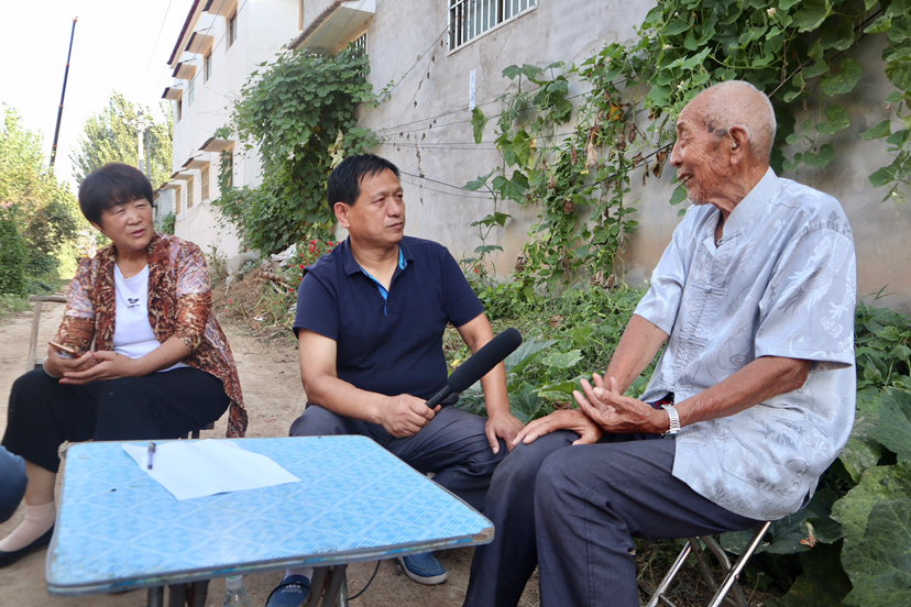 在中國人民抗日戰(zhàn)爭勝利75周年之際,扶溝縣新四軍研究會、吉鴻昌精神研究會名譽會長張敦、何俊山、尹發(fā)展和秘書長李偉,扶溝縣唯伊傳媒、扶溝縣天和文化傳媒負責人與縣融媒體記者一起,于9月4日驅(qū)車趕往縣城南15公里的革命老區(qū),有豫東小延安之稱的扶溝縣練寺鎮(zhèn)下坡行政村何樓村,走訪抗日老戰(zhàn)士、新四軍老戰(zhàn)士何天順。