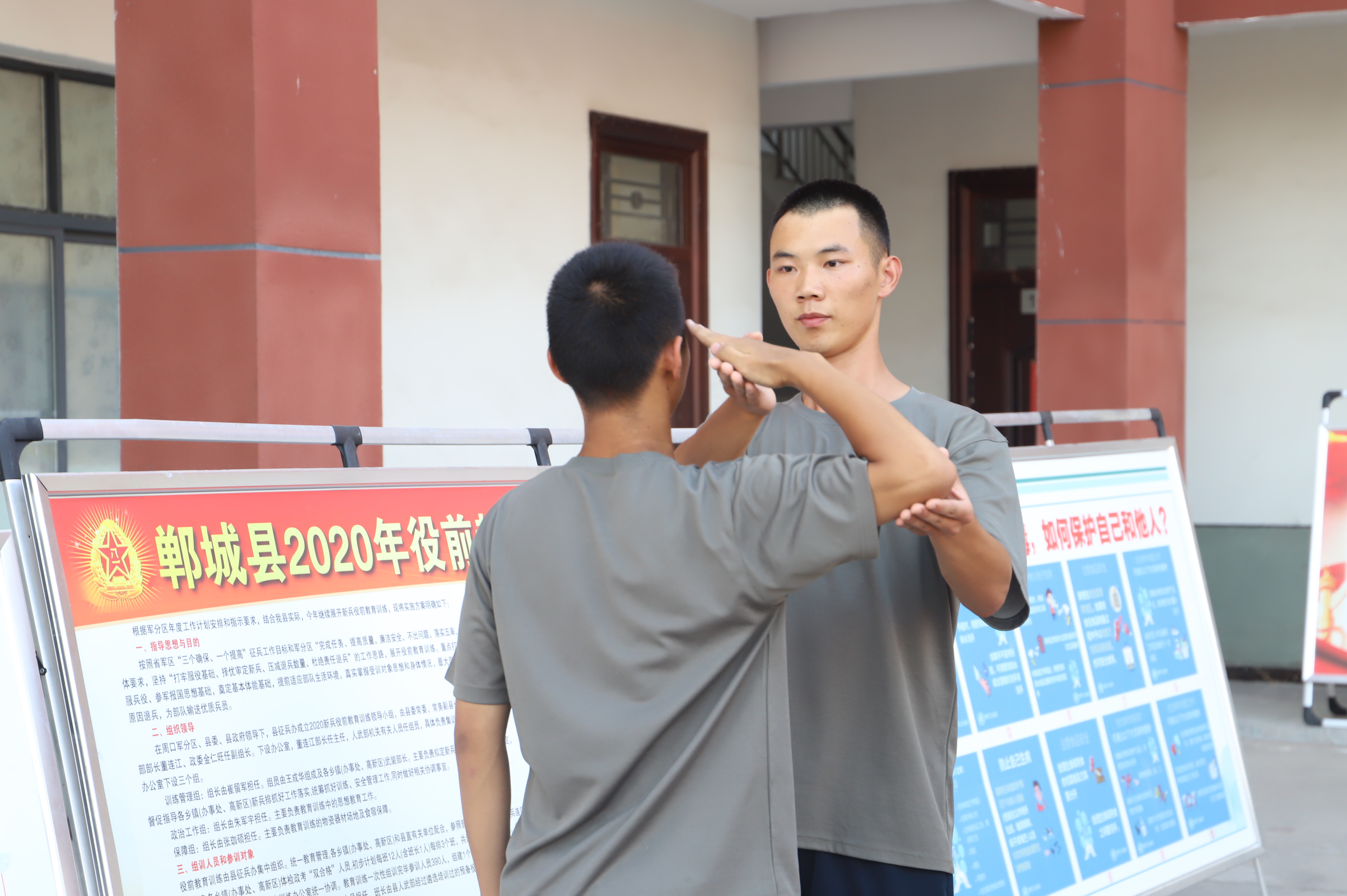 “敬禮,五指并攏,掌心向胸前,迅速抬起,中指至太陽(yáng)穴2厘米處。”“齊步走有5個(gè)動(dòng)作要領(lǐng):身體前傾、出左腳伸右手、挺胸臺(tái)頭目視前方、臂稍里合、手臂不彎。”在訓(xùn)練場(chǎng)上,羅禧辰、張佳浩協(xié)助訓(xùn)練員反復(fù)示范每一個(gè)動(dòng)作要領(lǐng),為預(yù)定新兵講軍營(yíng)的故事,使大家在入伍之前就體驗(yàn)到了軍營(yíng)生活,感受到了軍營(yíng)的溫暖與關(guān)愛(ài)。