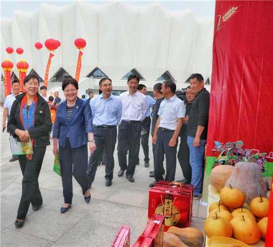在固城鄉(xiāng)農副產品展臺,談起豐收節(jié),李報中滿臉喜悅。今年他承包的200多畝蘆筍種植基地大豐收,在致富的同時,還吸納十幾名貧困戶在基地務工,帶動他們脫貧致富。“這是我們農民自己的節(jié)日,借著豐收節(jié)不僅能推介農副產品,大家還能跟著熱鬧放松,是一舉多得的好事情?!崩顖笾懈吲d地說。