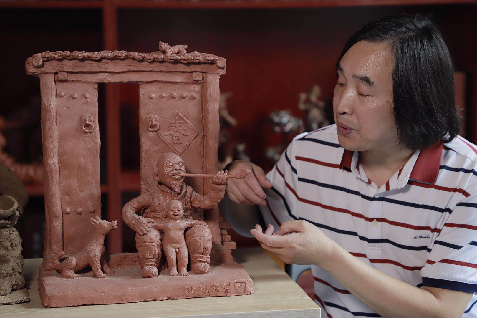 張振福從事泥塑藝術(shù)創(chuàng)作29年,進(jìn)修于河南教育學(xué)院美術(shù)系。經(jīng)過(guò)12年潛心研究,成功研制了“鈞瓷泥塑”,多次獲國(guó)家、省、市技能大師大獎(jiǎng),也是本次河南省泥塑類(lèi)唯一入選的建設(shè)項(xiàng)目。項(xiàng)目將從制作平臺(tái)、制作空間、制作設(shè)備等全面進(jìn)行提升改造,將更加有利于中華民俗文化的傳承與傳播。
