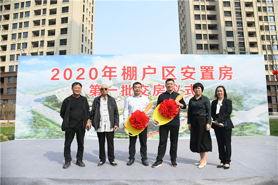 9月27日,2020年棚戶區(qū)安置房第一批交房,德和家園業(yè)主代表喜領(lǐng)鑰匙。記者 王映 攝 (③2)