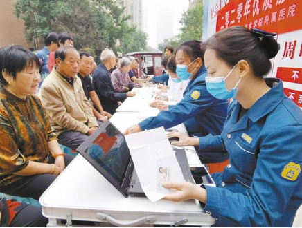 為滿足社區(qū)居民基本醫(yī)療衛(wèi)生服務(wù)需求,文昌社區(qū)衛(wèi)生服務(wù)中心開展了“優(yōu)質(zhì)服務(wù)基層行”活動,組織醫(yī)務(wù)人員走進小區(qū),為居民進行免費健康體檢,并建立健康檔案。圖為9月25日,醫(yī)務(wù)人員在建業(yè)小區(qū)為居民測量血壓,并建立健康檔案。