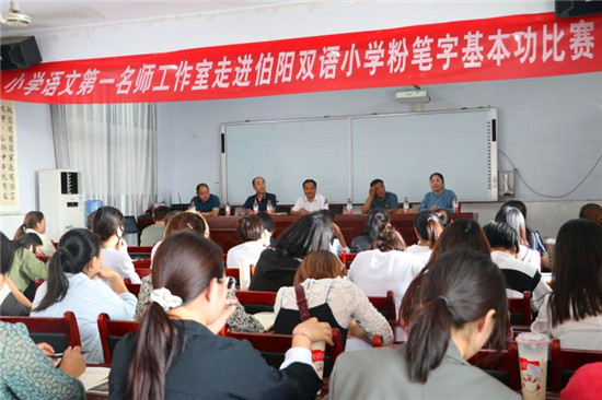 “漢字是中華民族的瑰寶,寫字教學(xué)是教師的一項(xiàng)基本功。此次縣硬筆書法協(xié)會應(yīng)邀來到伯陽學(xué)校,舉行書法進(jìn)校園活動。省書法家協(xié)會會員、縣書法家協(xié)會副主席李曉杰,省美術(shù)家協(xié)會會員劉龍飛作為特邀嘉賓現(xiàn)場揮毫潑墨與師生現(xiàn)場交流,將活動引向高潮?!笨h硬筆書法協(xié)會主席鮑雁冰說,結(jié)合自己多年對硬筆、毛筆習(xí)字的感悟,重點(diǎn)對教師進(jìn)行“如何寫好字”的培訓(xùn),使教師知道練字既能提高寫字技能,又可修身養(yǎng)性,從而引發(fā)了教師練習(xí)書法的興趣。(③2)