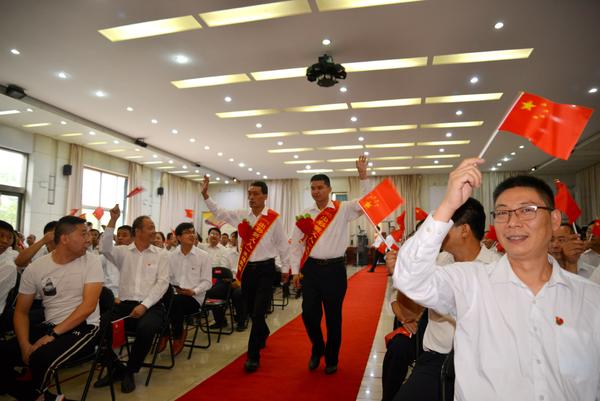 16名“出彩新義人”和8名提名獎(jiǎng)獲得者,身披綬帶,胸帶紅花,在全體職工的注視下,揮手走過紅毯通道。伴著激昂的音樂,在“出彩新義人”簽名墻上簽上自己的名字,臺(tái)下的員工家屬熱情的揮動(dòng)著手中的國旗,為他們吶喊、鼓掌……