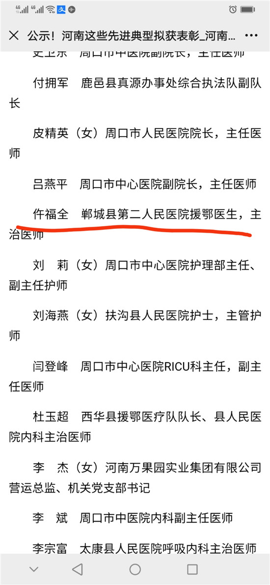 10月10日,河南省委、省政府表彰了一批抗擊新冠肺炎疫情先進(jìn)個人、河南省抗擊新冠肺炎疫情先進(jìn)集體、河南省優(yōu)秀共產(chǎn)黨員、河南省先進(jìn)基層黨組織。其中,鄲城縣副縣長肖煒,縣第二人民醫(yī)院援鄂醫(yī)生、主治醫(yī)師仵福全,縣人民醫(yī)院重癥醫(yī)學(xué)科ICU主任、副主任醫(yī)師王劍橋3位同志,被評為河南省抗擊新冠肺炎疫情先進(jìn)個人。