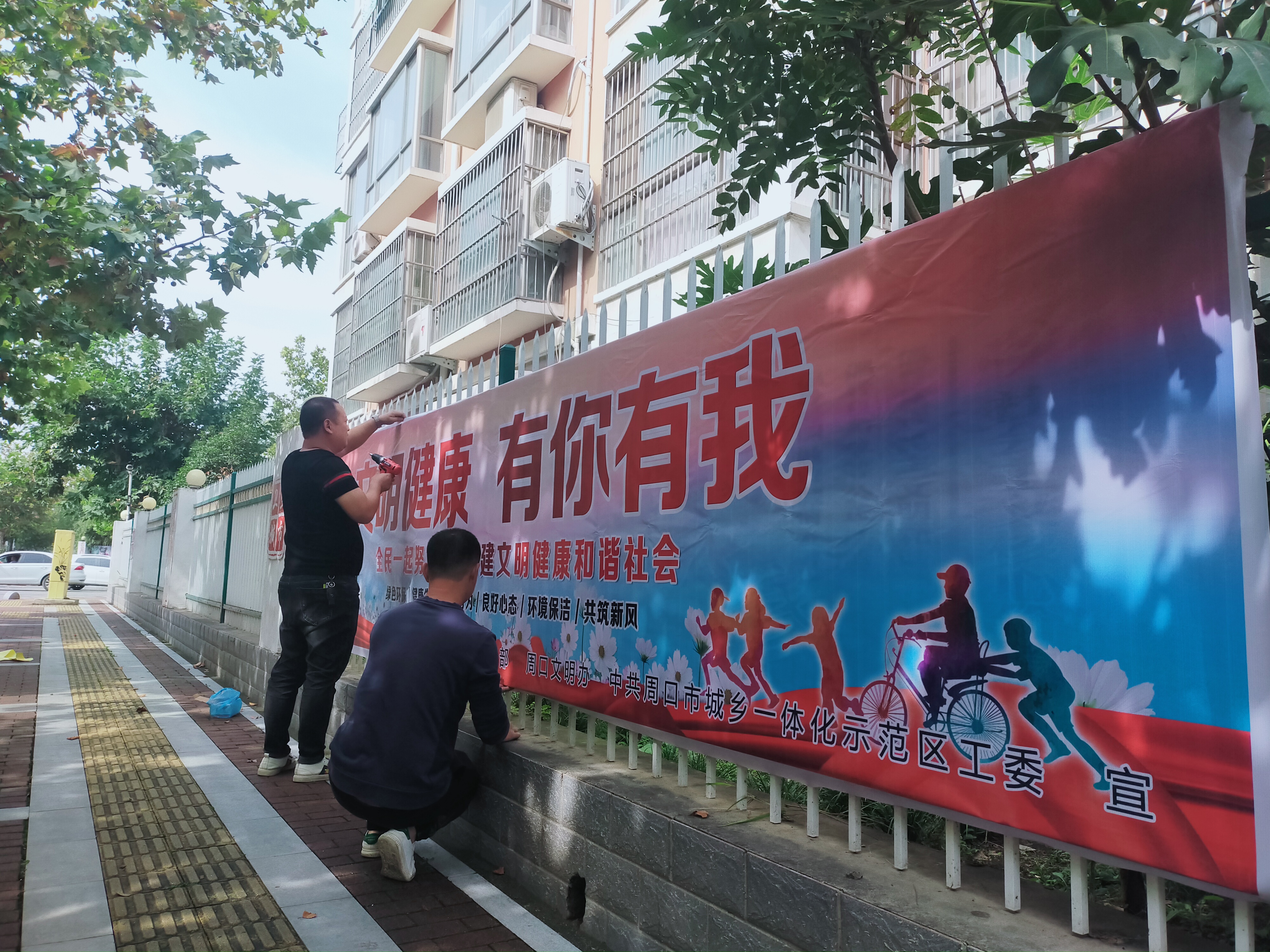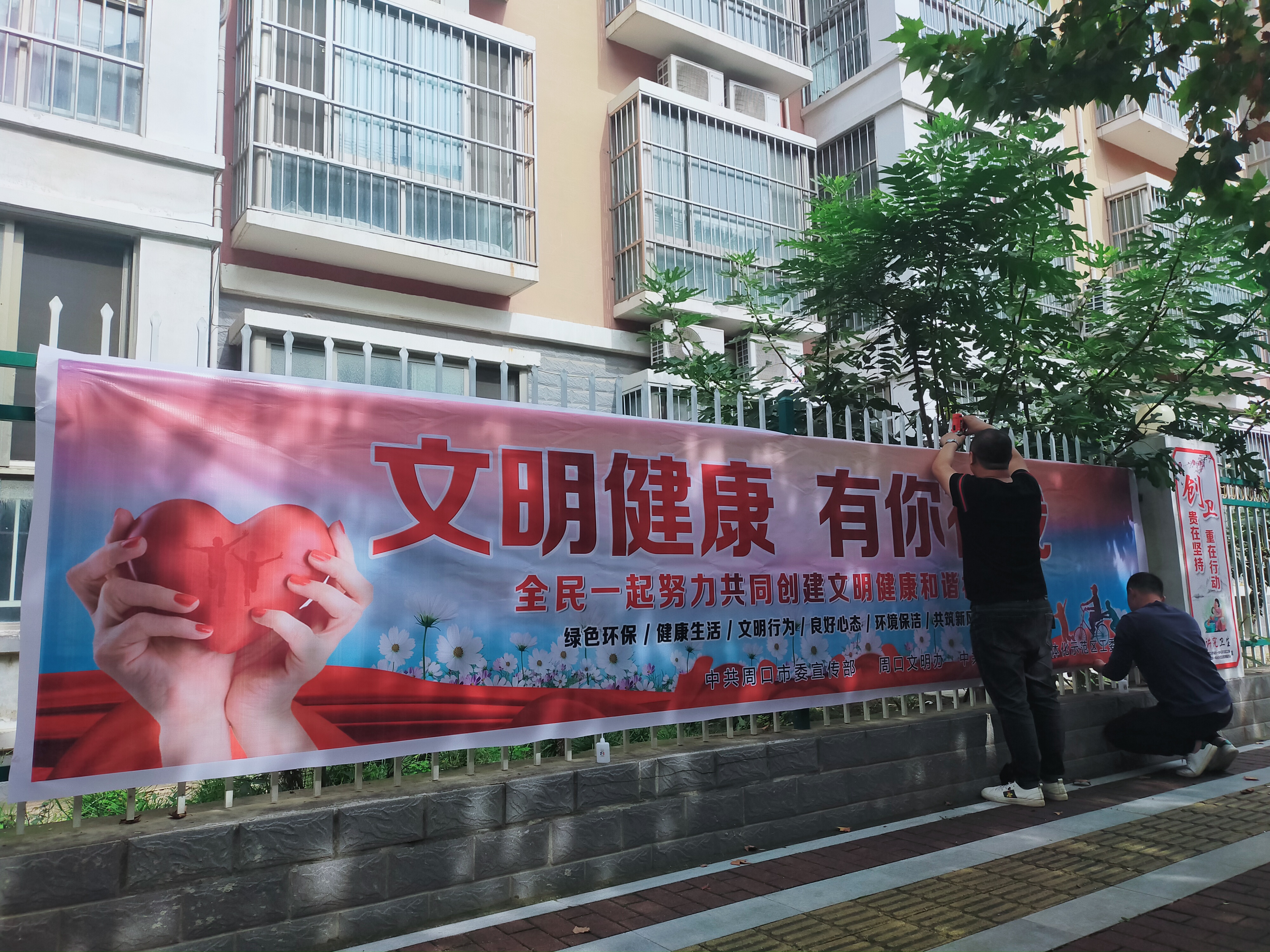 社會(huì)主義核心價(jià)值觀(guān)、市民文明公約、二十四孝圖……自“創(chuàng)文”工作開(kāi)展以來(lái),我市不斷加大宣傳力度,在辦公場(chǎng)所、公共區(qū)域、居民小區(qū)等主要場(chǎng)所及小區(qū)出入口、主要路段等張貼、懸掛開(kāi)展文明創(chuàng)建工作的宣傳標(biāo)語(yǔ)口號(hào),提高了市民對(duì)創(chuàng)建全國(guó)文明城市提名城市重要性的認(rèn)識(shí)和工作積極性,形成了全民動(dòng)員、人人參與的良好氛圍。圖為10月18日上午,工作人員正在中心城區(qū)府匯街張貼“創(chuàng)文”標(biāo)語(yǔ)。③7