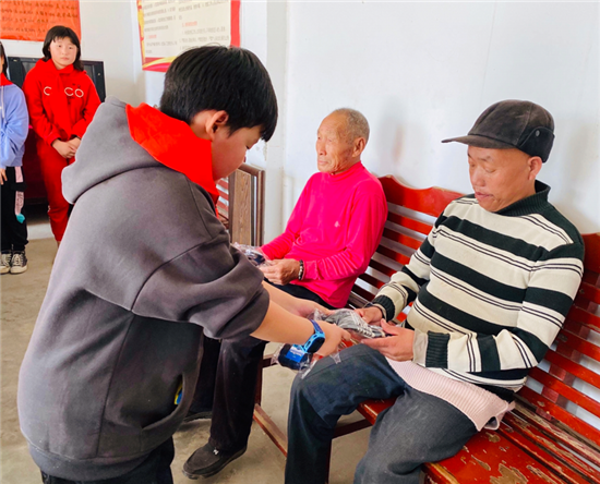 當(dāng)日9時(shí),學(xué)校各中隊(duì)隊(duì)員在校門口準(zhǔn)時(shí)集合,在校領(lǐng)導(dǎo)和大隊(duì)輔導(dǎo)員的帶領(lǐng)下,來到鎮(zhèn)敬老院。在敬老院里,孩子們認(rèn)認(rèn)真真清掃落葉和垃圾,為老人們晾曬被褥、衣物,擦洗用具,陪老人們聊天,還為每位老人贈(zèng)送了一雙“愛心棉手套”。老人們看著一張張青春陽(yáng)光的笑臉和一雙雙忙碌不停的小手,心里充滿溫暖和感激。
