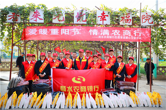 這是商水農(nóng)商銀行紀(jì)委書記、監(jiān)事長(zhǎng)張宇帶領(lǐng)該行志愿者服務(wù)隊(duì)正在開展“愛暖重陽(yáng)節(jié) 情滿農(nóng)商行”走訪慰問活動(dòng)。