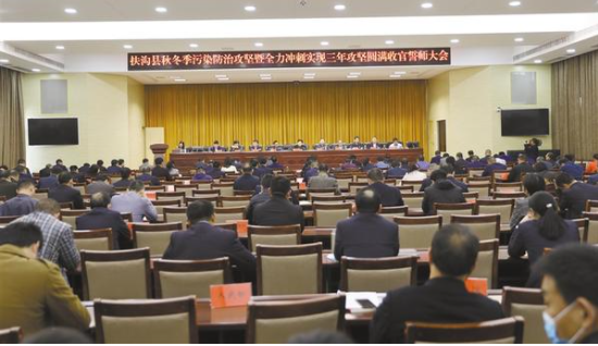 本報訊 (記者 李一) 10月22日,扶溝召開秋冬季污染防治攻堅暨全力沖刺實現(xiàn)三年攻堅圓滿收官誓師大會(如圖),分析形勢,聚焦短板,部署具體工作任務(wù),動員全縣上下扛牢責任、堅定信心,以“亮劍”精神和不破樓蘭終不還的韌勁,堅決打贏污染防治攻堅戰(zhàn)??h領(lǐng)導張穎波、耿黨恩、姜永來、張建中、李明朗、王霄靈、趙紅亮、曹來凌、任松奎、張禹等出席會議。縣委各部委辦常務(wù)副職、縣直各單位主要負責人、各鄉(xiāng)鎮(zhèn)(辦)黨政正職參加會議。