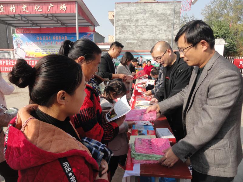 為紀念《反間諜法》頒布實施6周年,商水縣委政法委、縣委國安辦等單位聯(lián)合開展普法教育進鄉(xiāng)村活動,通過發(fā)放宣傳資料、展示宣傳版面、現場講解等形式對群眾進行國安教育和法治教育。圖為11月1日,工作人員在活動現場向村民發(fā)放宣傳資料。