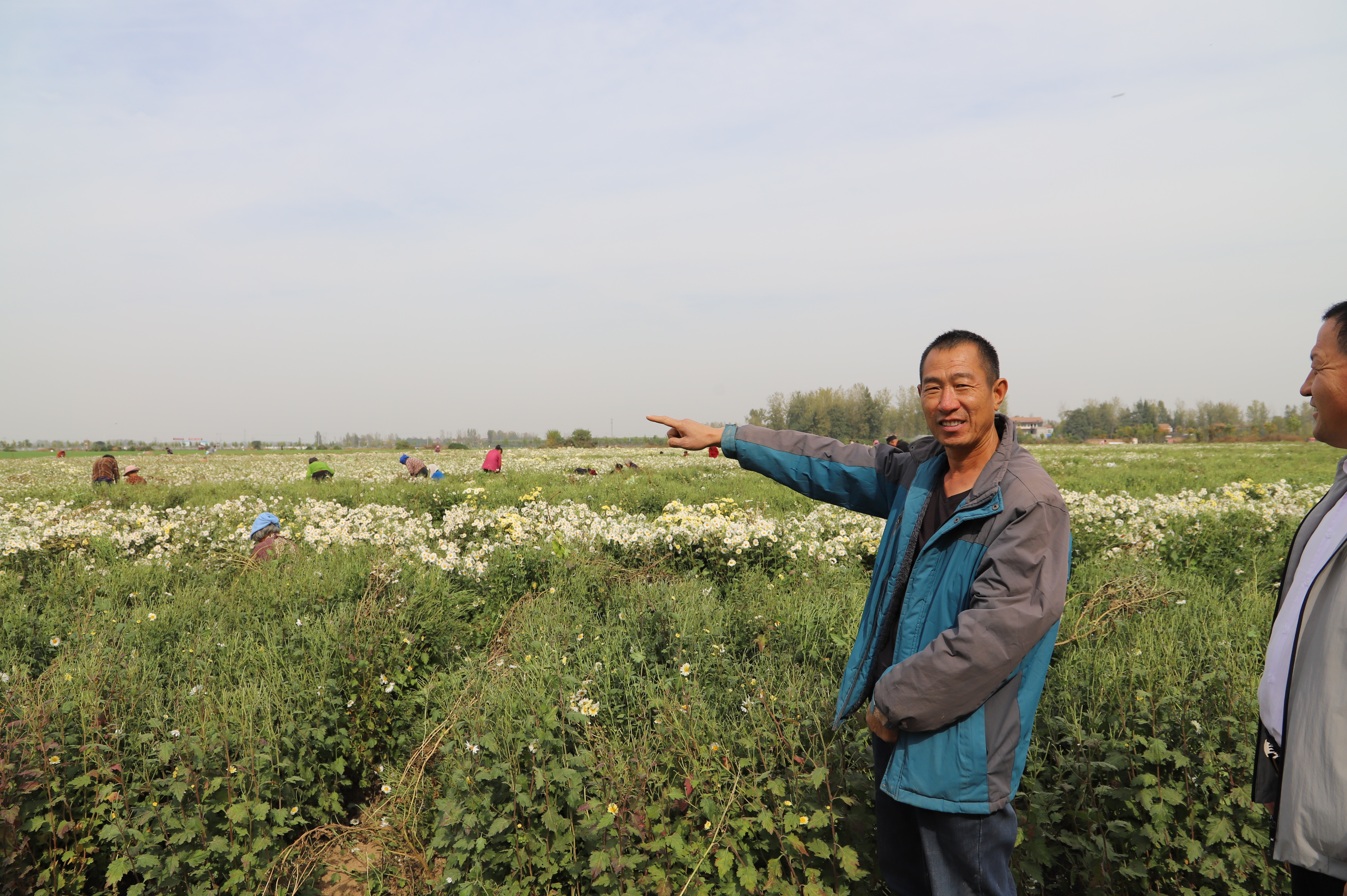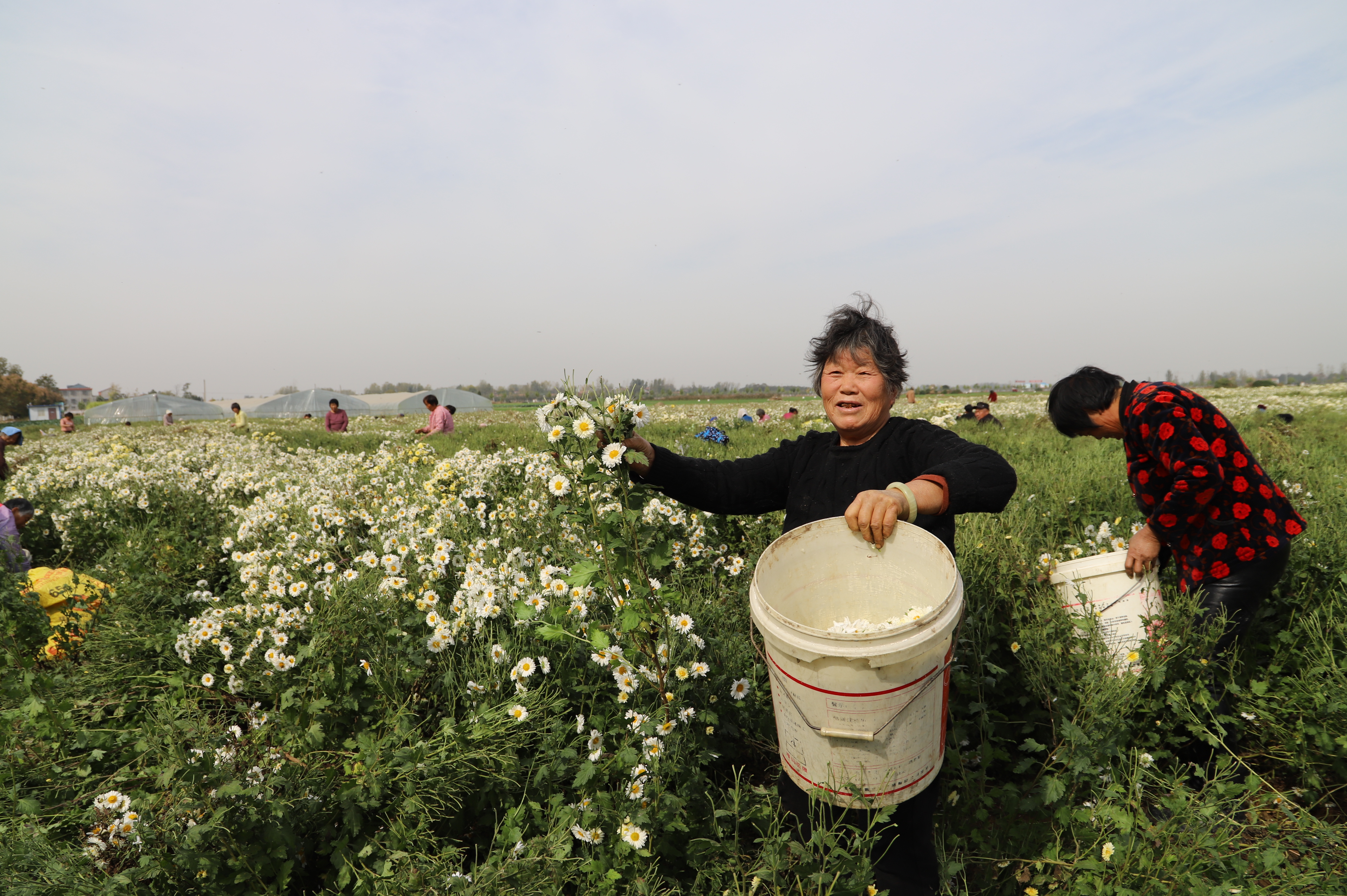 原來,菊花田的老板叫晉振中,于2018年從全縣脫貧攻堅種植信息渠道得知種菊花能致富,銷售的末端是安徽亳州的藥材市場和一些花茶商家。特別是種植方式和平原種植紅薯一樣,把田地打成壟,栽苗、施肥、澆水、除草,9月份采摘一次、11月份采摘一次,剩下的菊花秸稈粉碎到田間作為肥料,還能種植晚小麥,十分方便。于是,他通過鎮(zhèn)村兩級黨員干部協(xié)助流轉(zhuǎn)了100畝土地,2019年就掙了20多萬元。由于晉菜園村是貧困村,在他的菊花田務(wù)工的勞動力大多是貧困戶,能帶動近百戶貧困戶脫貧致富,晉振中欣慰地覺得自己為脫貧攻堅做了一份大貢獻。