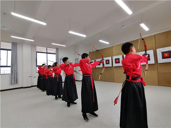 在皮營學(xué)?;顒邮?,學(xué)校舞蹈社團(tuán)的小朋友展示了傳統(tǒng)儀式《鹿鳴》,深情的演繹,展示了他們對國學(xué)經(jīng)典的理解。禮射是禮樂文明重要組成部分,習(xí)射先習(xí)禮,射以觀德。習(xí)射可以強(qiáng)健體魄,其中還蘊(yùn)含了眾多古人先賢的智慧。皮營學(xué)校禮射興趣班的小朋友進(jìn)行禮射表演,隨著挾矢,正筈,審固,舉弓,引彀,發(fā)矢,斂弓,執(zhí)弦等一系列指令,拈弓搭弦展示禮射八法。在這里,學(xué)生們通過不同方式的展示,詮釋自己對“禮”“樂”的理解和認(rèn)知。