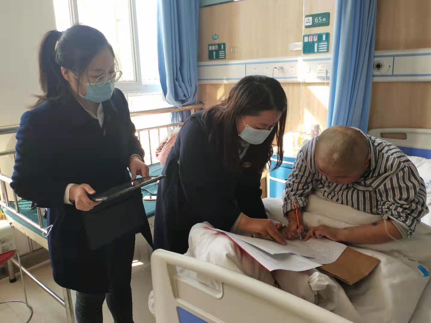 為了更好地服務群眾,沈丘縣婦聯(lián)堅持特事特辦,針對正在縣人民醫(yī)院腫瘤科接受治療的卞路口鄉(xiāng)小郭莊村的盧彩英,縣婦聯(lián)副主席段金花聯(lián)系了中銀富登村鎮(zhèn)的工作人員,到病房現(xiàn)場為其辦理了領(lǐng)取救助金的相關(guān)手續(xù)。