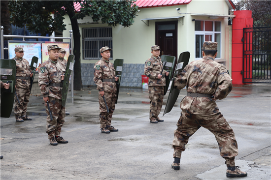 寒風(fēng)吹不滅參訓(xùn)隊(duì)員火熱的心,訓(xùn)練場(chǎng)上,喊號(hào)聲陣陣,盾牌閃動(dòng),警棍揮舞,擦出梆梆的響聲,這是民兵手持警棍盾牌正在操練防暴術(shù),軍容嚴(yán)整,神情專注。教練員親自示范、耐心細(xì)致講解,每個(gè)動(dòng)作盡量做到標(biāo)準(zhǔn)規(guī)范,做到攻必克、守必固。