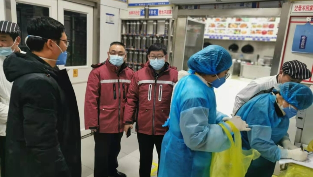 為助力第一屆周商大會圓滿成功,市衛(wèi)生健康委抽調(diào)近百名調(diào)精兵強將組成衛(wèi)生保障專班開展衛(wèi)勤保障工作。圖為工作人員在市委黨校迎賓館和體育賓館餐廳對后廚人員做核酸檢測及開展冷鏈?zhǔn)称废尽?/span>