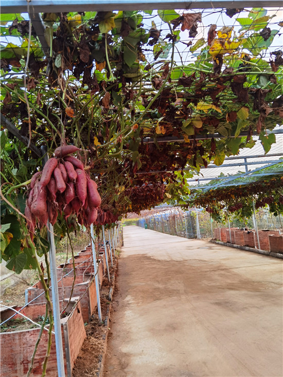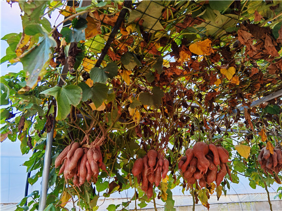 西華縣農(nóng)科所積極開(kāi)展“空中結(jié)薯”試驗(yàn)種植研究,并取得成功?!翱罩薪Y(jié)薯”采取嫁接技術(shù),選用旋花科植物牽牛作砧木,脫毒薯苗作接穗嫁接而成,嫁接成活后栽到土壤里,搭建棚子,加強(qiáng)薯苗水肥管理,每株插一根小竹木桿,促進(jìn)薯苗快速生長(zhǎng)上棚,在棚上吊花盆,盆內(nèi)放蛭石,生長(zhǎng)到掤上的薯秧壓到花盆里,加強(qiáng)水肥管理。90天結(jié)薯,進(jìn)入10月份把花盆去掉。該技術(shù)打破傳統(tǒng)栽培方式,主要為公園、科技園區(qū)、農(nóng)業(yè)生態(tài)觀光園、家庭庭院內(nèi)培植,有很好的科研價(jià)值、觀賞價(jià)值和農(nóng)業(yè)推廣價(jià)值。周口日?qǐng)?bào)·周道客戶端記者李鳳霞 攝