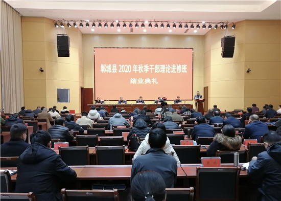11月25日下午,鄲城縣2020年秋季干部理論進(jìn)修班舉行結(jié)業(yè)典禮,縣委副書(shū)記、黨校校長(zhǎng)王獻(xiàn)超,縣委常委、組織部長(zhǎng)蔣磊出席結(jié)業(yè)典禮。