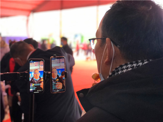 28日早上7時許,周口網(wǎng)紅俱樂部的網(wǎng)紅們和工作人員就開始為今天的直播做準備,早早把直播設(shè)備搬到現(xiàn)場,進行調(diào)試。10時左右,周商產(chǎn)品展示展覽活動現(xiàn)場人頭攢動,熱鬧非凡,來自周口本地的9位網(wǎng)紅們陸續(xù)架好手機直播設(shè)備,打開補光燈,開始直播。現(xiàn)場的9位網(wǎng)紅各有特色,有打扮時髦的美女主播,有歌聲出眾的中年大叔,年齡最大的網(wǎng)紅是今年65歲的鹿邑大爺。網(wǎng)紅們一手拿著周口的蜂蜜、空心掛面、麻花、粉條、醬豆等土特產(chǎn),一邊對著手機屏幕里的粉絲熱情地展示和介紹起來,有的還直接進行現(xiàn)場吃播,不時與網(wǎng)友進行唱歌、聊天互動,吸引了不少行人前來觀看。“原來在抖音上看過網(wǎng)紅帶貨,但沒見過真人, 今天終于見到真實的網(wǎng)紅了!感覺很有意思!”前來觀展的市民劉女士說。