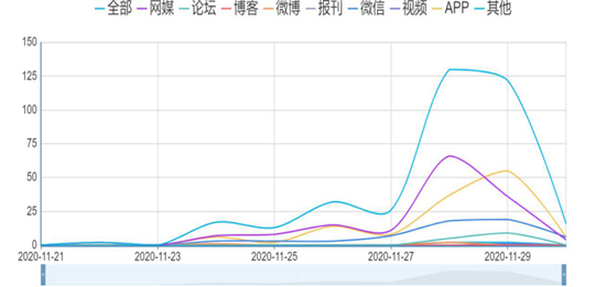 11月21日0:00至11月30日11::00,周口報(bào)業(yè)傳媒集團(tuán)大數(shù)據(jù)中心監(jiān)測到的數(shù)據(jù)顯示,