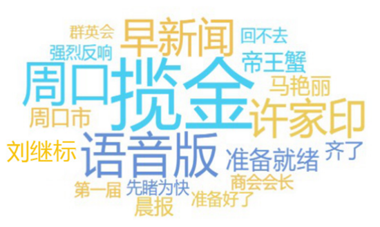 網(wǎng)絡(luò)熱詞反映了網(wǎng)民關(guān)注的重點(diǎn),詞云圖中大大的“攬金”二字占據(jù)詞云圖中央,可見攬金是真的攬金,據(jù)悉,首屆周商大會簽約項(xiàng)目31個(gè),總投資達(dá)429.7億元人民幣?!霸S家印”“馬艷麗”在整個(gè)圖中也是光彩奪目,作為周口人,走上北上廣深的成功人士還心心念念家鄉(xiāng)的發(fā)展,讓老鄉(xiāng)們倍感溫暖,家鄉(xiāng)人關(guān)注他們?yōu)榧亦l(xiāng)發(fā)展做出的努力和他們的動態(tài)也是再正常不過了。