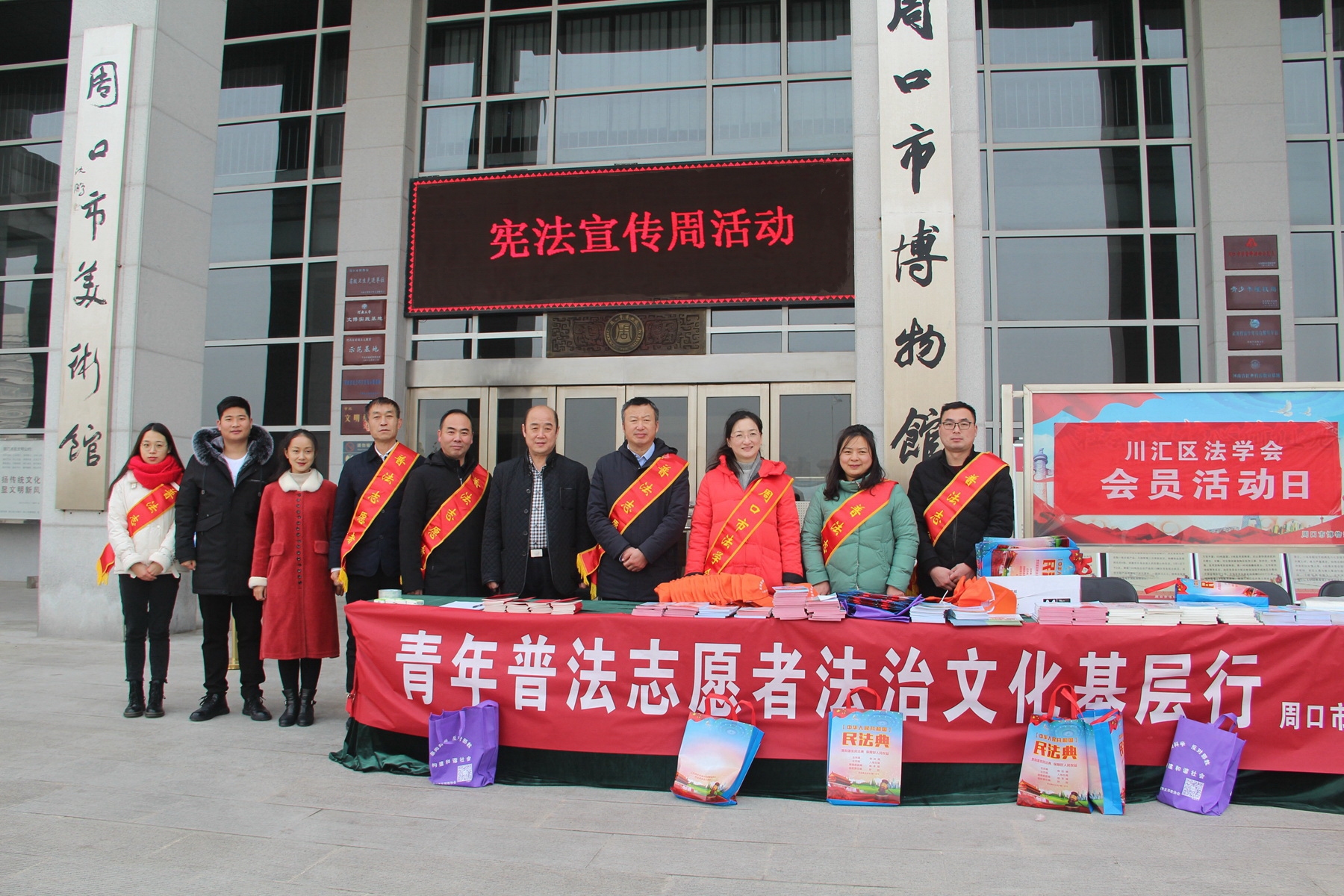 12月3日,在第七個(gè)國(guó)家憲法日來(lái)臨之際,周口市委政法委、周口市法學(xué)會(huì)、川匯區(qū)法學(xué)會(huì),聯(lián)合團(tuán)體會(huì)員單位市博物館、市文物保護(hù)中心開(kāi)展憲法、國(guó)家安全、反邪教宣傳活動(dòng),讓遵守憲法和法律在全社會(huì)成為習(xí)慣、成為自覺(jué)。周口市委政法委副書(shū)記張曉、二級(jí)調(diào)研員朱建民參加普法宣傳活動(dòng)。