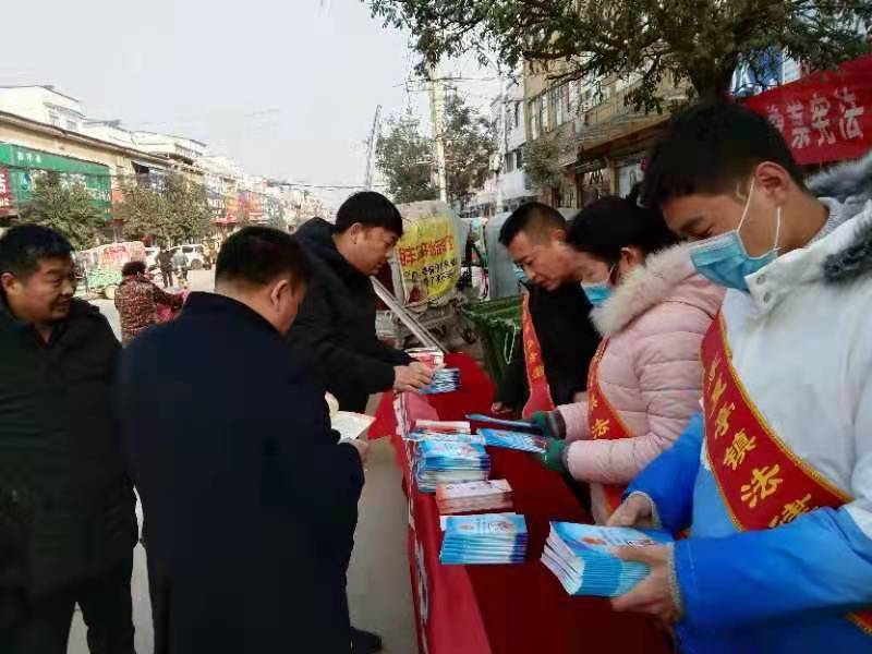 一大早,鎮(zhèn)黨委書記武瀟、副書記劉剛德、人大主席王慶輝、紀委書記徐如強、武裝部長王中原等帶領鎮(zhèn)司法所、綜治辦、自然資源所等部門工作人員,在鎮(zhèn)政府門前懸掛宣傳橫幅、設立咨詢臺、宣傳展板,認真開展普法宣傳活動。