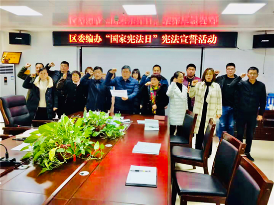 “我宣誓:忠于中華人民共和國憲法,維護(hù)憲法權(quán)威,履行法定職責(zé),忠于祖國、忠于人民,恪盡職守、廉潔奉公,接受人民監(jiān)督,為建設(shè)富強(qiáng)、民主、文明、和諧、美麗的社會主義現(xiàn)代化強(qiáng)國努力奮斗!”12月4日上午,淮陽區(qū)委編辦主任張命令,帶領(lǐng)全體干部職工一起宣誓,洪亮而鏗鏘的誓言響徹宣誓現(xiàn)場。