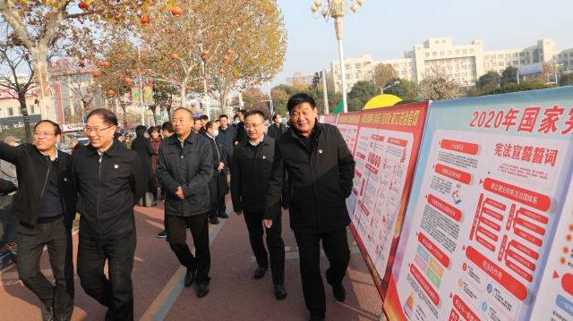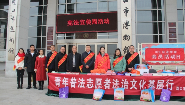 12月3日,在第七個國家憲法日來臨之際,周口市委政法委、周口市法學會、川匯區(qū)法學會,聯(lián)合團體會員單位市博物館、市文物保護中心開展憲法、國家安全、反邪教宣傳活動,讓遵守憲法和法律在全社會成為習慣、成為自覺。周口市委政法委副書記張曉、二級調(diào)研員朱建民參加普法宣傳活動。