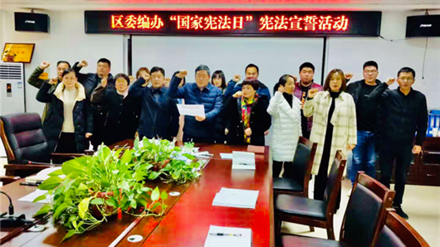12月4日是第七個國家憲法日。為弘揚憲法精神、維護憲法權(quán)威,當日,川匯區(qū)人和街道辦事處全體班子成員、機關(guān)干部、人大聯(lián)絡(luò)站代表、各社區(qū)“兩委”班子成員90余人在辦事處新時代文明實踐所舉行了憲法宣誓活動。