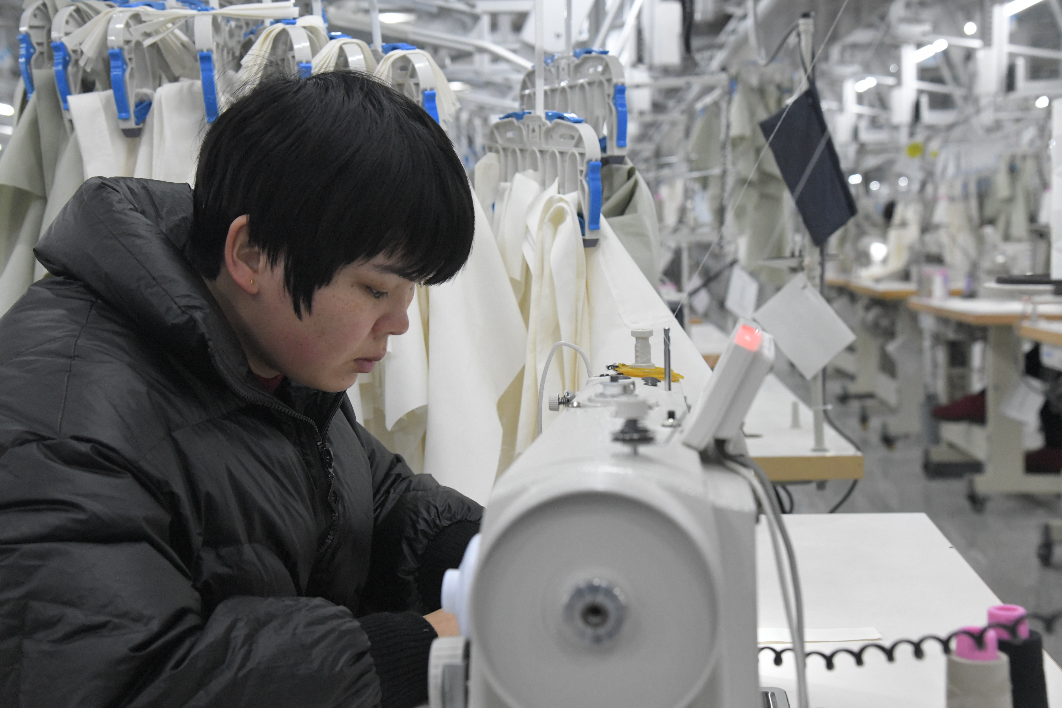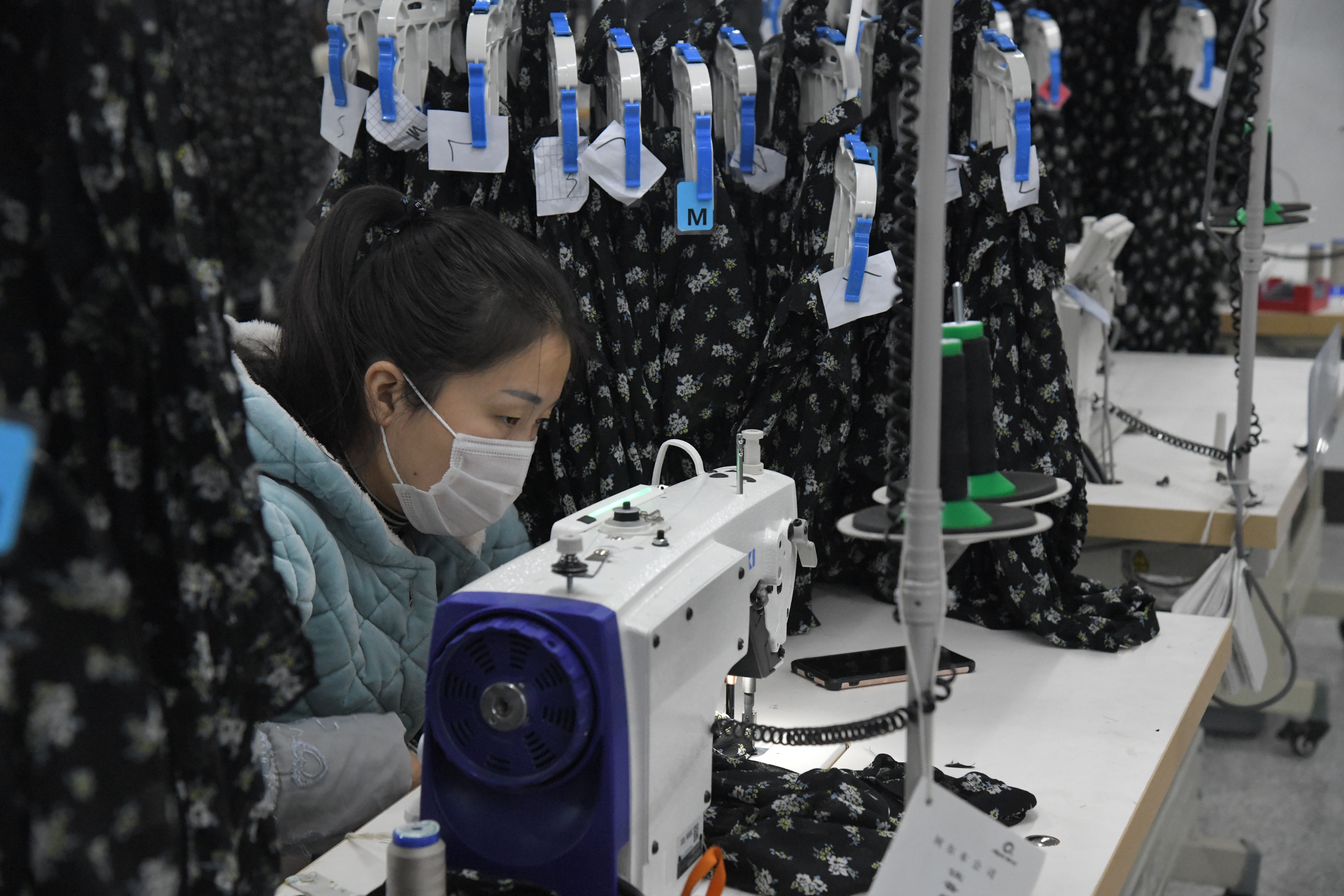 12月17日,在商水縣產(chǎn)業(yè)集聚區(qū)雅戈?duì)柺⑻┘徔椆I(yè)園一現(xiàn)代化車間內(nèi),紡織女工正在制作外貿(mào)訂單服裝。雅戈?duì)柺⑻┘徔椆I(yè)園是周口市重點(diǎn)招商引資企業(yè),總投資48億元,占地2000畝,是集棉紡、面料、印染、成衣、進(jìn)出口貿(mào)易、跨國(guó)經(jīng)營(yíng)于一體的大型綜合生產(chǎn)基地,長(zhǎng)期代加工雅戈?duì)枴VH等國(guó)際品牌。該項(xiàng)目一期已經(jīng)投產(chǎn),全部建成后將填補(bǔ)我市紡織服裝行業(yè)缺少高端品牌的空白,促進(jìn)我市輕紡工業(yè)的發(fā)展。