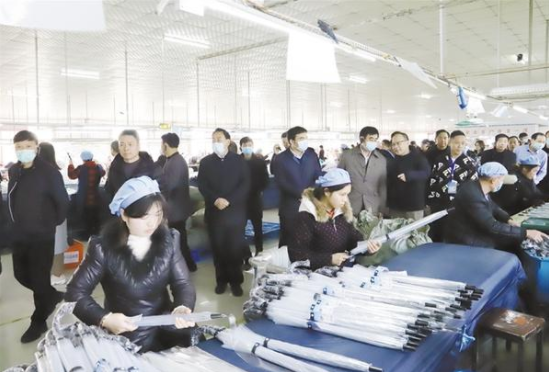12月23日下午,在鄲城縣舉行的中國(guó)日用雜品工業(yè)協(xié)會(huì)制傘專業(yè)委員會(huì)五屆五次暨六屆一次會(huì)員代表大會(huì)中,來自全國(guó)制傘行業(yè)的精英們先后來到鄲城會(huì)客廳、傘業(yè)產(chǎn)業(yè)園、兄和家居、返鄉(xiāng)創(chuàng)業(yè)園、洺河森林樂園、鄲城一高、人民公園、體育場(chǎng)等地,實(shí)地感受鄲城高質(zhì)量發(fā)展成果和傘業(yè)發(fā)展?jié)摿?,共謀中國(guó)傘業(yè)的發(fā)展前景。 記者 徐松 攝