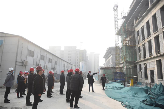 當日上午,受院長于健委托,院領導張廣海、葉達林、王文鋒、王成坤帶領醫(yī)政、護理、控感等相關職能科室負責人,一行20余人到建設工地現(xiàn)場察看。施工方技術人員詳細介紹了門診樓、病房樓等各樓層的功能定位、科室布局、水暖線路等,雙方就一些細節(jié)問題進行深入交流。