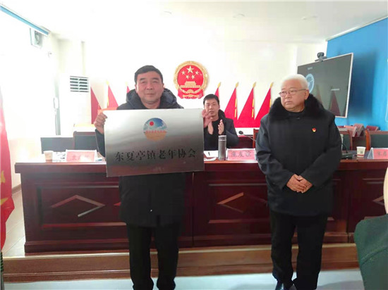 接著,張新芳代表縣老年協(xié)會向東夏亭鎮(zhèn)老年協(xié)會進(jìn)行授牌授旗。