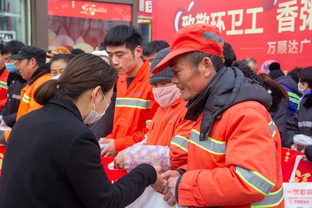 據(jù)了解,萬順達廣場為了本次活動,精心為環(huán)衛(wèi)工人、公安民警準(zhǔn)備了八寶粥、披薩、油條等營養(yǎng)早餐,還有口罩等防疫用品,毛巾、春聯(lián)等生活用品。