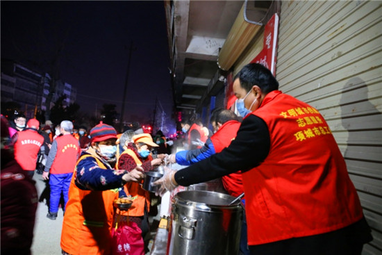 為了使廣大辛勤工作的勞動者度過一個難忘的臘八節(jié),1月20日,項城市總工會黨組書記、常務副主席田雨帶領市總工會職工志愿服務隊在環(huán)城路愛心粥屋開展“一碗愛心粥·溫暖一座城”志愿服務活動,幫環(huán)衛(wèi)工人端飯、盛菜、洗碗,并給愛心粥屋送去了大米、面粉、食用油等物品,為他們送上節(jié)日的問候。