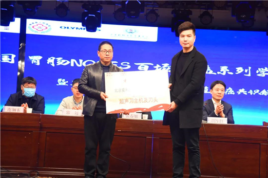 楊雨旺書記介紹了鄲城縣人民醫(yī)院胃腸外科的基本情況以及在近年發(fā)展中取得的長足進步。胡軍紅教授在致辭中指出,NOSES作為一種微創(chuàng)中的微創(chuàng)手術(shù),是一種醫(yī)患共贏的好技術(shù),是未來微創(chuàng)外科發(fā)展的趨勢和方向之一。他對不辭勞苦開展公益學(xué)術(shù)講座,推廣NOSES理念和技術(shù)的各位專家表示感謝,同時預(yù)祝系列學(xué)術(shù)活動圓滿成功。 中國胃腸NOSES聯(lián)盟向鄲城縣人民醫(yī)院贈送了《胃腸手術(shù)策略與操作圖解》等專業(yè)書籍20本和超聲刀一套。