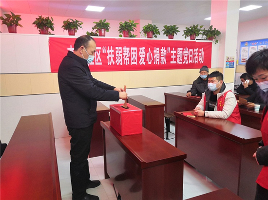 春節(jié)將至,歲寒情深。為確保困難群眾“過(guò)暖冬”“過(guò)好年”,1月29日上午,鄲城縣洺南辦事處李莊社區(qū)組織開(kāi)展“扶弱幫困,愛(ài)心捐款”主題黨日活動(dòng)?!拔覀儠?huì)盡自己最大的力量幫助他們解決實(shí)際困難,祝愿他們度過(guò)一個(gè)溫暖的春節(jié)?!鄙鐓^(qū)黨支部書(shū)記、主任王超勤表示。