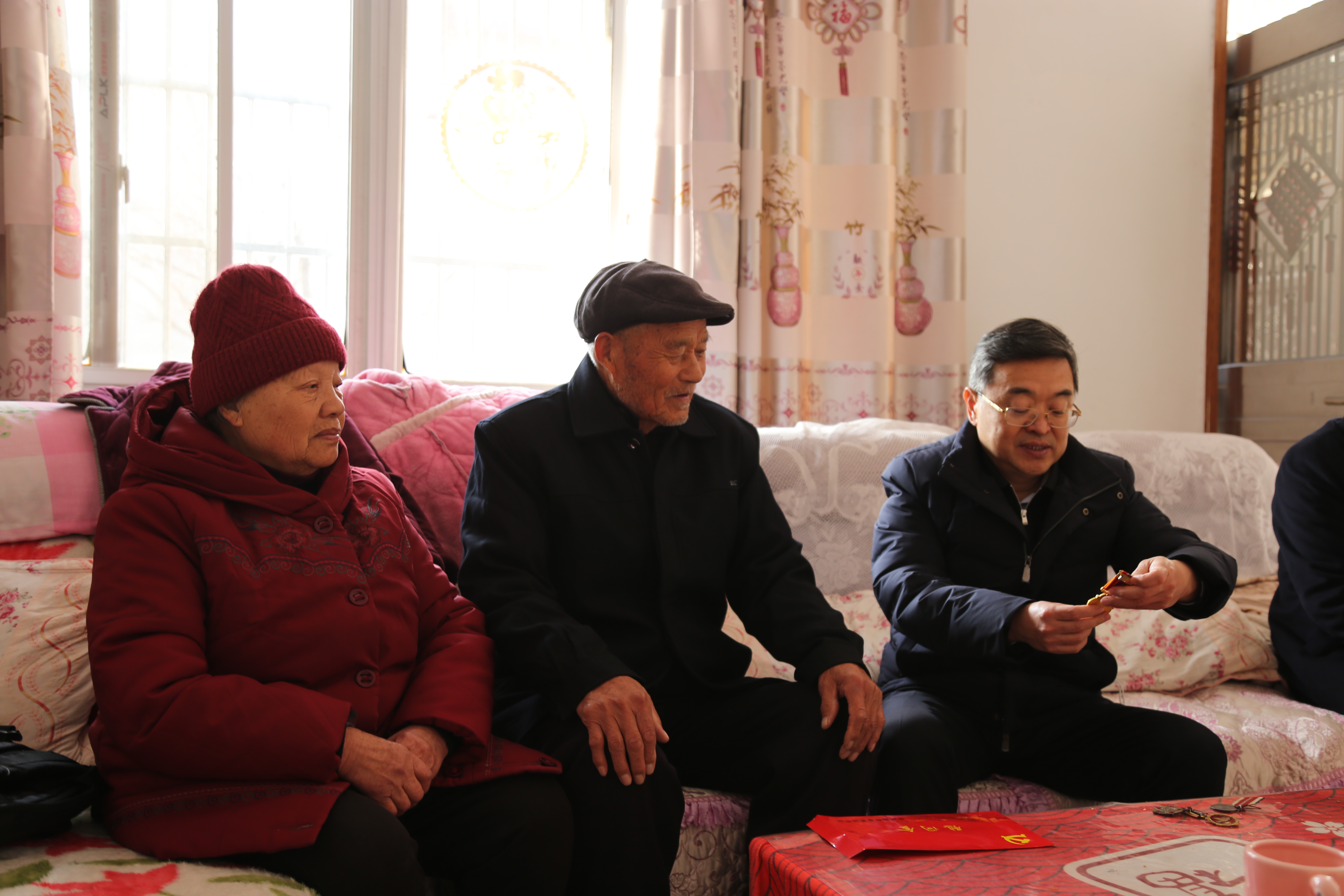 在老黨員卜洪賀家中,皇甫立新與他親切交談,詳細(xì)詢問他的身體和生活情況,感謝他為黨和人民所作出的貢獻(xiàn),祝福他身體健康、春節(jié)快樂,并為他送去了慰問金和慰問品。