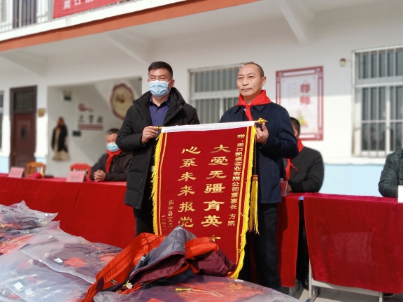 春節(jié)臨近,方凱自掏腰包6萬余元,購買164套新校服捐贈(zèng)給西華縣艾崗鄉(xiāng)半截樓小學(xué),一如既往地將大愛播撒與傳遞。說起方凱的愛心行動(dòng),那是不勝枚舉。方凱10余年來堅(jiān)持幫貧濟(jì)困,每年都采取不同的方式,為貧困戶、貧困大學(xué)生、環(huán)衛(wèi)工、留守兒童、敬老院、貧困學(xué)校、福利中心智障孩子和災(zāi)區(qū)等進(jìn)行愛心捐助,已經(jīng)累計(jì)捐款捐物達(dá)1600多萬元。為了表達(dá)對方凱的謝意,西華縣艾崗鄉(xiāng)半截樓小學(xué)向方凱贈(zèng)送了“大愛無疆育英才,心系未來報(bào)黨恩”的錦旗,同時(shí),還鄭重聘請方凱為該校名譽(yù)校長。