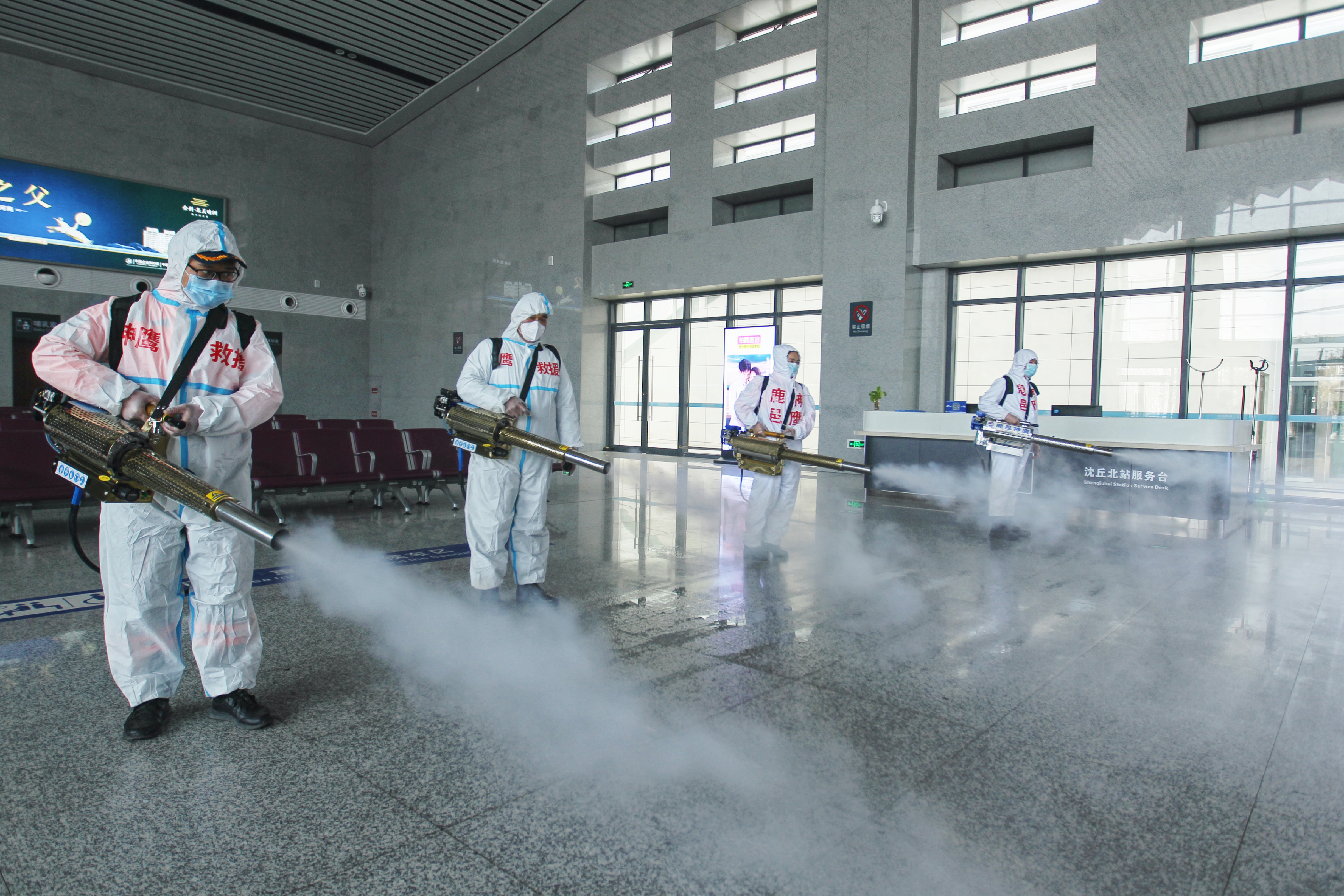 2月8日,沈丘北站邀請河南神鷹救援隊,攜帶4臺大型脈沖彌霧機,按照國家衛(wèi)生防疫消殺管理標準規(guī)范,對該站進行全方位消殺工作。