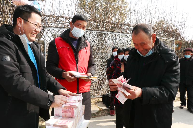 宋傳東、宋建超、王龍、魏端明、張鳳云......村民們領(lǐng)過錢,歡笑著離開現(xiàn)場。當(dāng)日,合作社向村民們發(fā)放了150萬元的租金、工資和分紅。涉及城郊鄉(xiāng)池莊行政村的宋莊、毛莊、王菜園和大于行政村的常莊、楊莊等9個(gè)自然村,共計(jì)400戶村民。