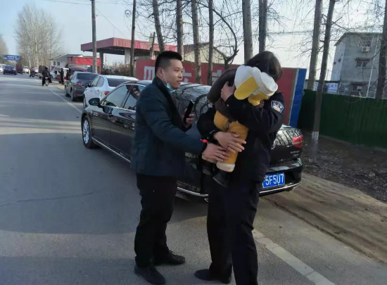 見到報警人時,民警發(fā)現(xiàn)小女孩還在不停的哭泣,已為人父的顧一諾趕緊將小女孩抱入懷中,輕輕擦拭女孩臉上的淚水,不停的安慰。簡單的向報警人了解情況后,顧一諾抱著小女孩開始在附近商鋪為其尋找家人,或許是因為顧一諾特別會哄小孩,在找尋途中,小女孩竟然趴在顧一諾的肩膀上睡著了,擔心孩子著涼,顧一諾和同事決定先將小女孩抱回派出所。