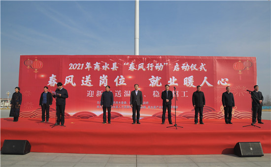 春風送崗位,就業(yè)暖人心。春節(jié)假期剛過,2月18日,商水縣舉行2021年“春風行動”啟動儀式暨企業(yè)春季用工招聘會,為企業(yè)和求職者搭建一個雙向溝通交流的平臺,讓用人單位挑選到適合企業(yè)發(fā)展的人才,也讓求職者在家門口找到適合自己的就業(yè)崗位??h委書記孔陽,縣長田林,縣人大常委會主任李德來,縣政協(xié)主席孫培忠,副縣長朱高建,縣政協(xié)副主席、工商聯(lián)主席彭發(fā)光,縣工會主席盧紅兵,縣集聚區(qū)管委會主任馬三華等出席啟動儀式。啟動儀式由朱高建主持。