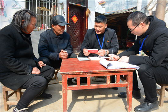 “春節(jié)前夕,有人給您送慰問品嗎?”“有啊,村干部送過了一桶食用油?!薄澳鷤兎蚱迋z個(gè)養(yǎng)老金沒問題吧?”“正常領(lǐng)取,沒有問題?!薄坝心膫€(gè)部門向您收過錢嗎?”“這不屬于非法占地,沒有人來要錢?!薄澳昵澳鷧⒓恿舜逦瘬Q屆選舉嗎?對干部滿意不?”“參加了,俺對新任干部沒有意見”......不知不覺臨近中午,邵國闖等微笑告辭。