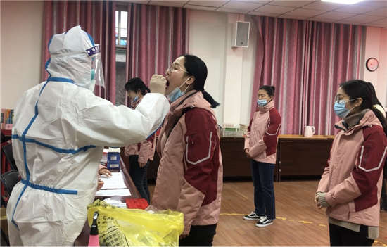 為保證市直幼兒園順利開學(xué),按照市教體局統(tǒng)一安排部署,近日,周口市婦女兒童醫(yī)院核酸檢測組對市直幼兒園全體教職工百余人順利進(jìn)行了新冠肺炎核酸檢測,檢測結(jié)果在校老師全部健康,無異常。圖為市直幼兒園教職工在進(jìn)行新冠肺炎核酸檢測。