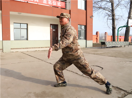 “立正!向右看齊!”3月4日,在鄲城縣民兵訓(xùn)練基地,2021年春季征兵預(yù)定新兵訓(xùn)練場上,53歲的訓(xùn)練班長王成華從骨子里喊出這句口號、集結(jié)準(zhǔn)新兵隊伍。從1992年“鐵軍”127師退伍進入人武部至今,這句口號他已經(jīng)喊了29年,始終底氣十足。同事和準(zhǔn)新兵們尊稱他為“班長王”。