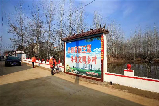 綠樹環(huán)抱的村落,四通八達(dá)的水泥路,溫馨雅致的文化長廊,花木掩映的庭院……初春時節(jié),位于周項(xiàng)路一側(cè)的商水縣黃寨鎮(zhèn)王潭行政村處處美麗如畫。